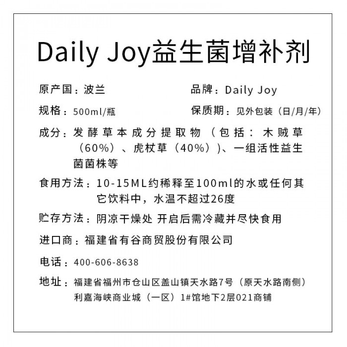 Daily joy 益生菌增补剂 500ml
