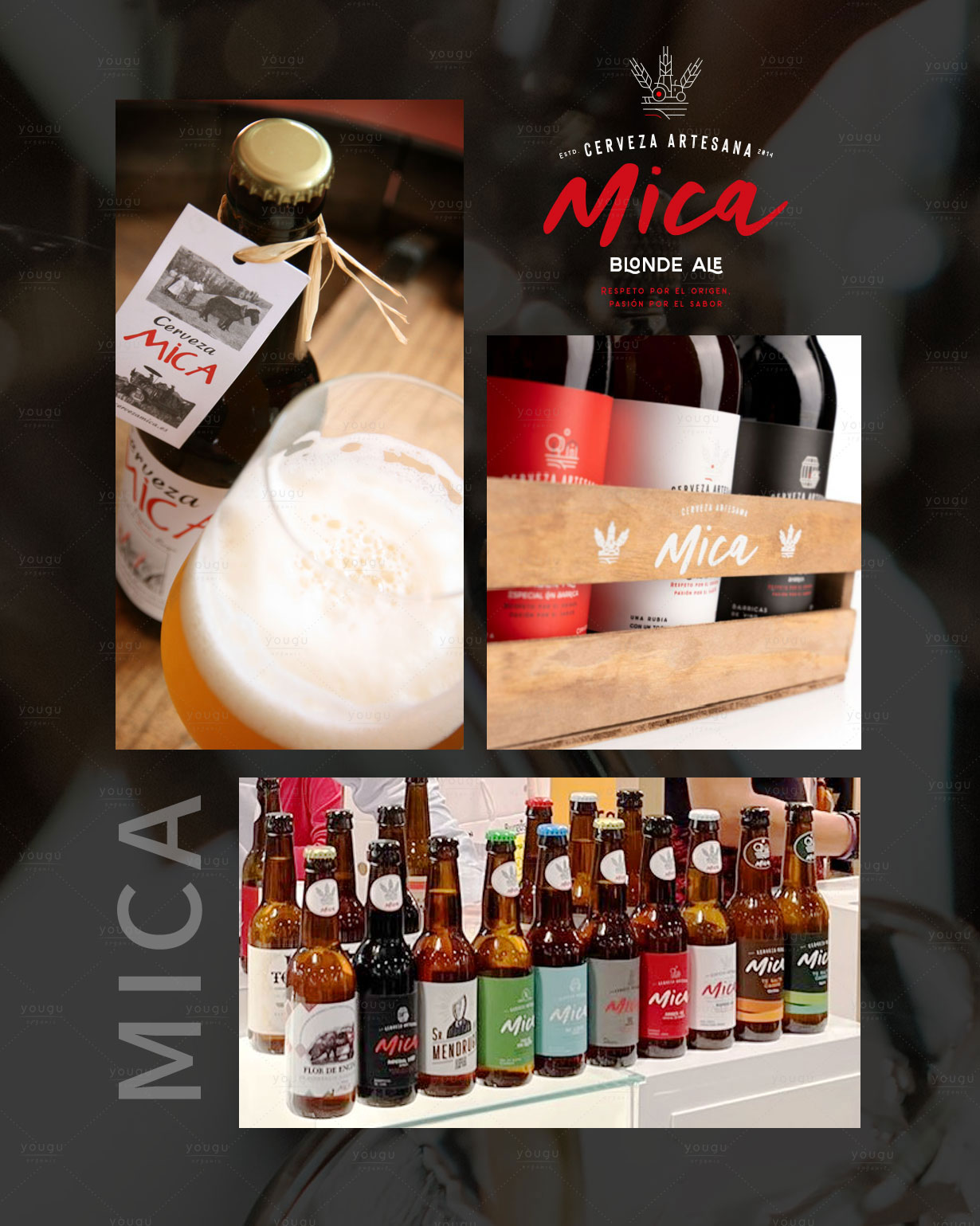 • 我们来自 La Ribera del Duero,MICA是我们镇Fuentenebro(布尔戈斯)山区的一种矿物。在高山气候下,周围环绕着种类繁多的矿物质,这些矿物质使我们的土地别具特色-带红色的粘土,我们种植谷物,全心呵护和照顾,收获了优质的大麦。 啤酒MICA的诞生:我们想酿造出优质、天然、精酿、与众不同的啤酒。在富含矿物质的土地上种植出的谷物,我们用它来酿造天然好喝的啤酒。