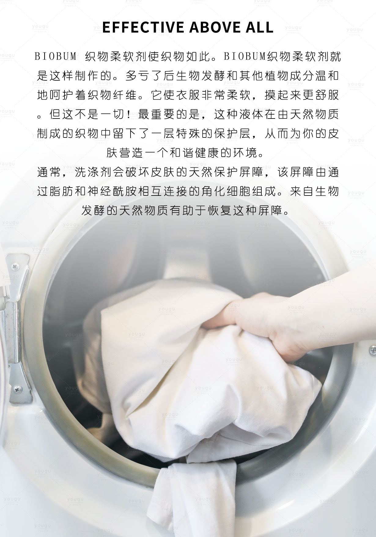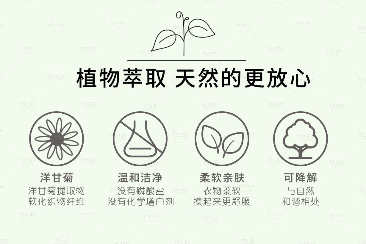 后生物发酵和其他植物成分温和地呵护着织物纤维。使衣服更柔软,摸起来更舒服,并赋予衣物清新的香味