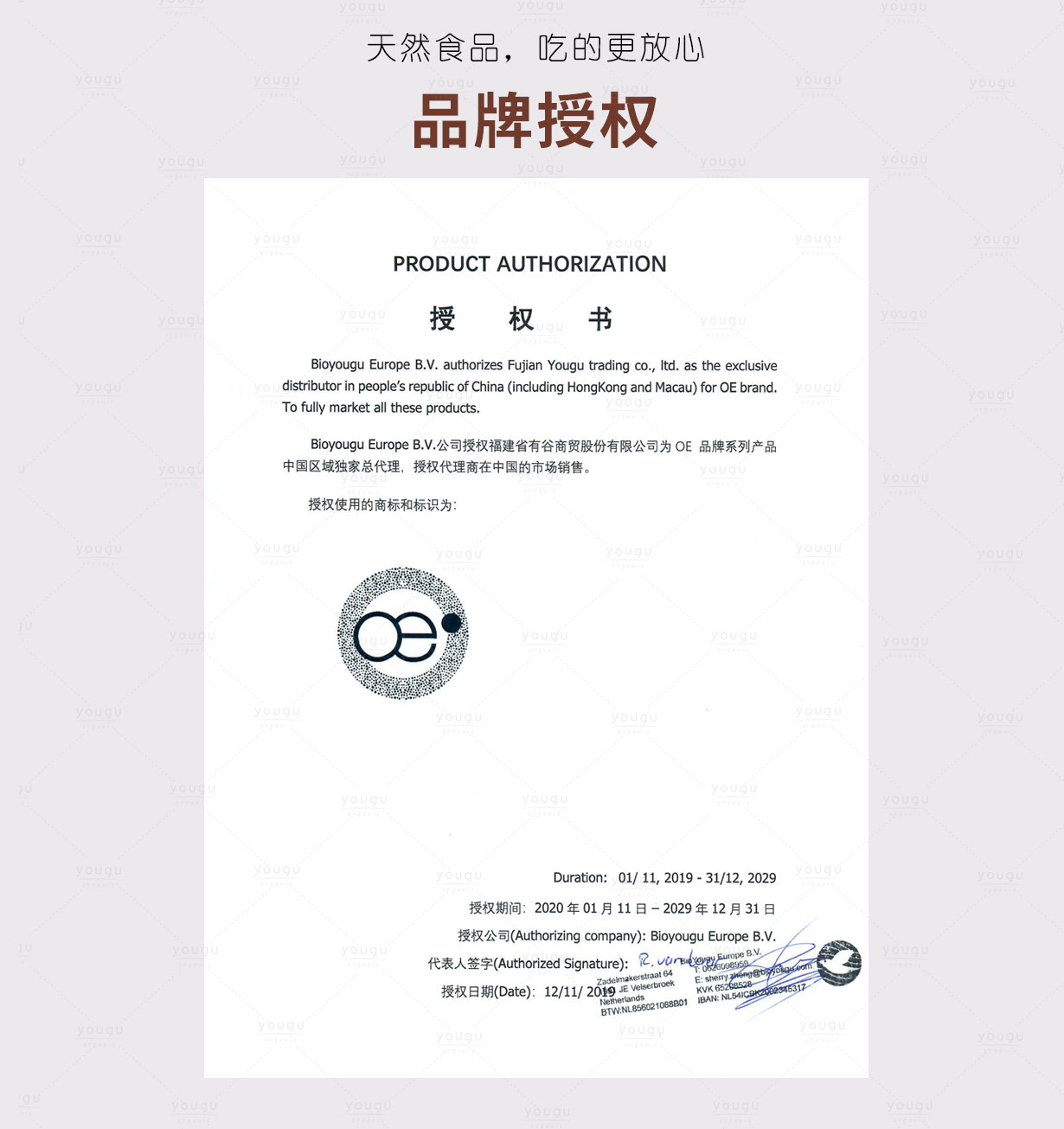 授权证书 原装进口
