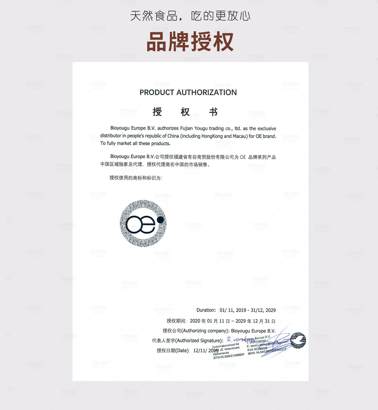 授权证书 原装进口