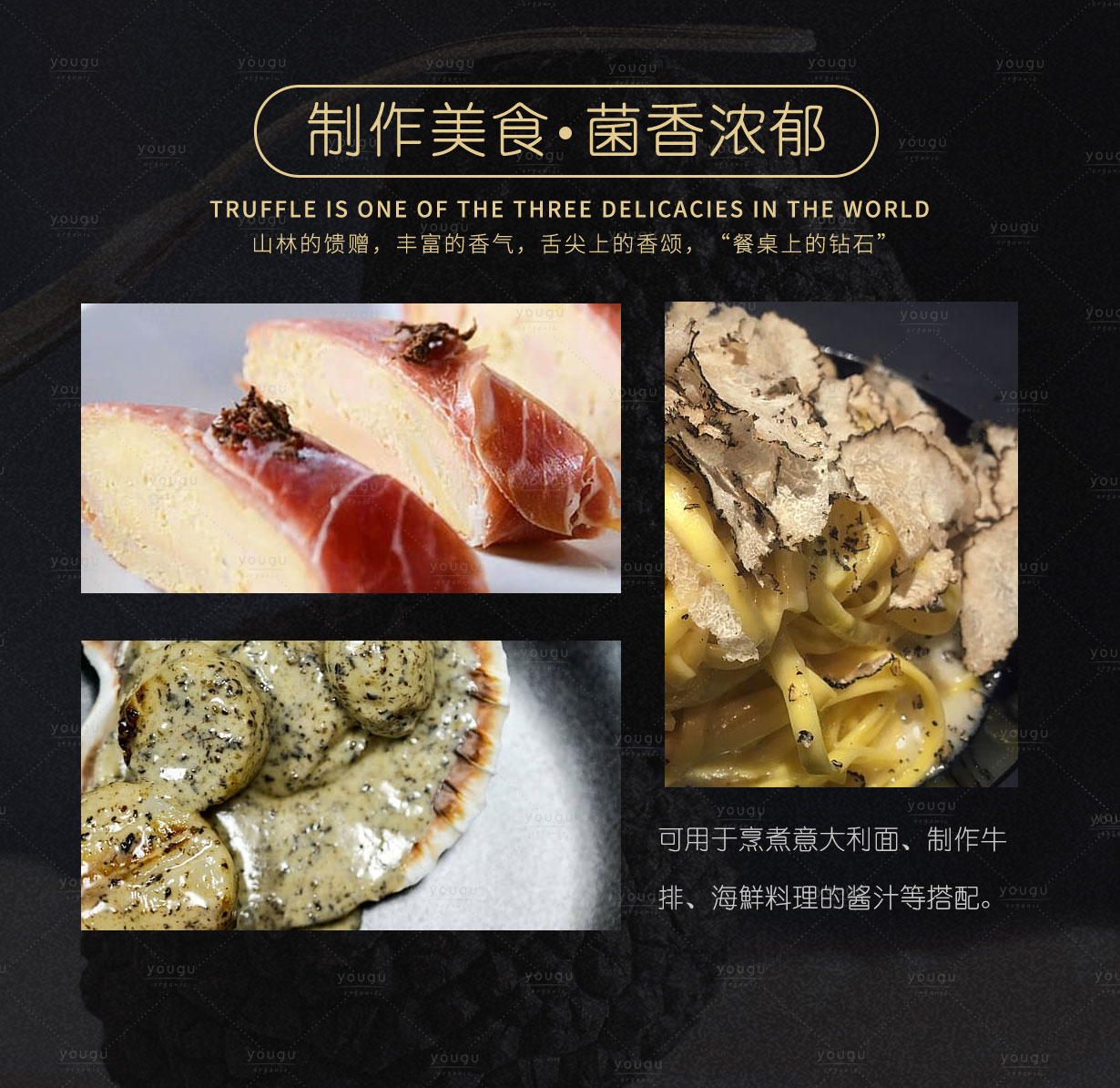 意大利原装进口,整粒黑松露,可用于烹煮意大利面、制作牛排、海鮮料理的酱汁等搭配。