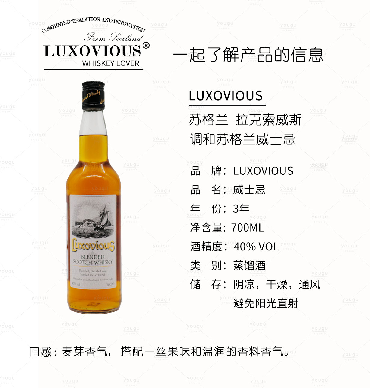 luxovious牌威士忌,苏格兰原装进口,传统工艺与创新相结合,可观赏可收藏,高档品质随手礼!