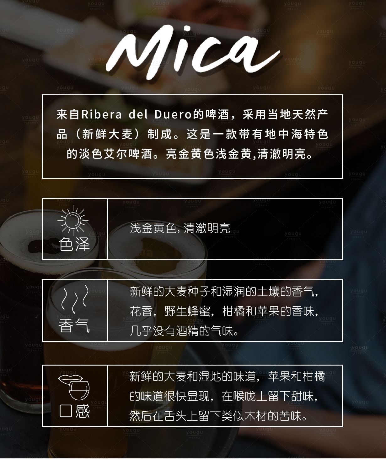 西班牙原装进口,美式淡色艾尔既有活泼清爽、饱满明亮的酒花风味,又不会因麦芽和酒精的原因而显得厚重,虽苦味收口但意味深长。