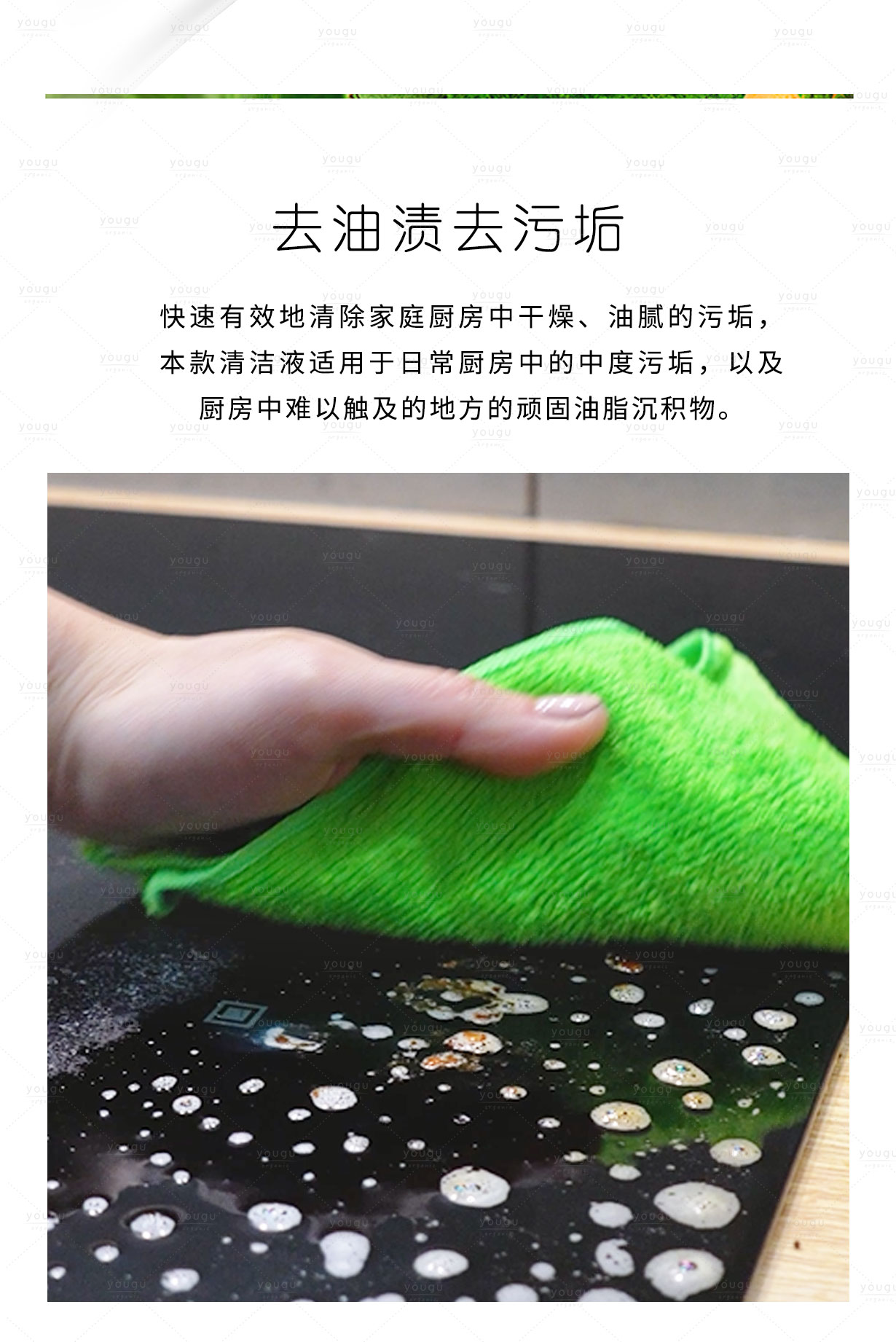 快速有效地清除厨房中干燥、油腻的污垢,该清洁液适用于日常厨房中的中度污垢,以及厨房中难以触及的地方的顽固油脂沉积物。