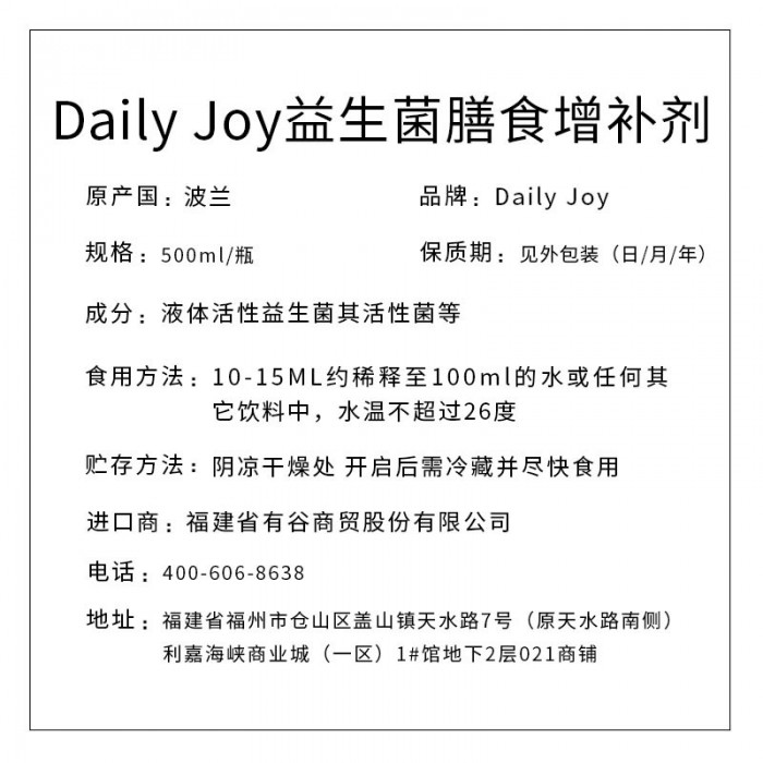 Daily joy益生菌膳食增补剂500ml