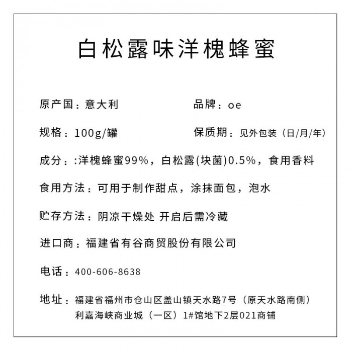 OE牌 白松露味洋槐蜂蜜 100g