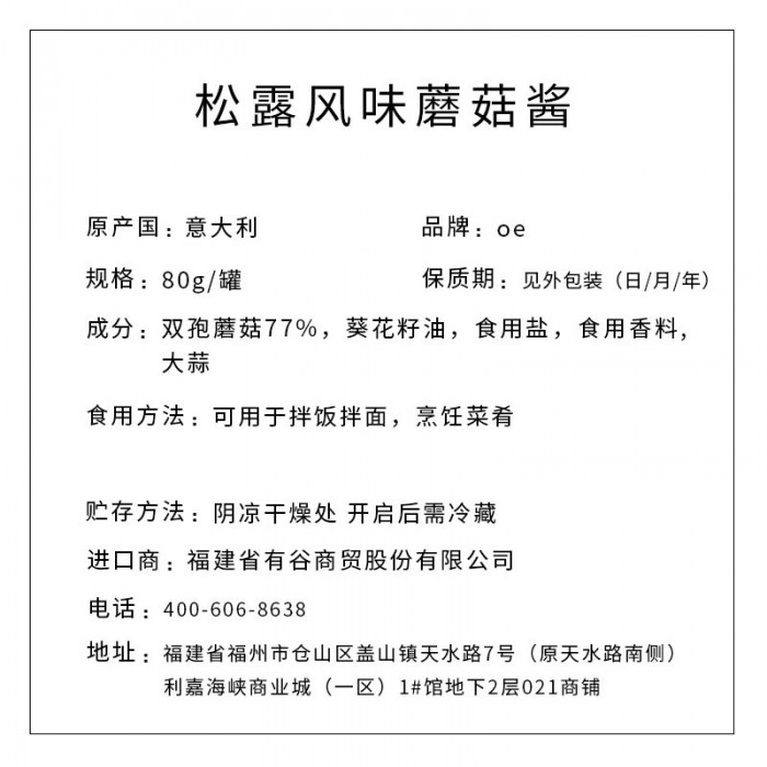 OE牌 松露风味蘑菇酱 80g